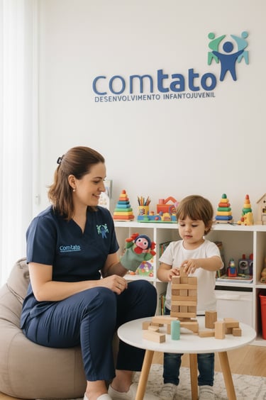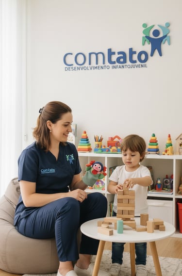 A psicologia está presente na Clínica Com-Tato atuando integralmente nos processos comportamentais, emocionais e cognitivos das crianças, objetivando fomentar um desenvolvimento completo e seguro no curso dos tratamentos oferecidos. A psicologia se traduz em considerar a qualidade do vínculo terapeuta-criança, promover intervenções grupais, desenvolver diretamente manejo cognitivo e comportamental nas dificuldades apresentadas pelos pacientes. Com feedback constante, caráter colaborativo e inclusão da família, a psicologia abrange caráter prático na vida das crianças, demonstrando efetividade e melhora no contexto clínico, familiar e social. O olhar psicológico aparece tanto diretamente, com protocolos específicos da área voltados à aplicação clínica individual, baseado na abordagem Cognitivo Comportamental, quanto indiretamente, adicionando programas e objetivos que promovem estimulação neuropsicológica, além de saúde emocional e comportamental de nossos pequenos.